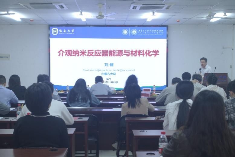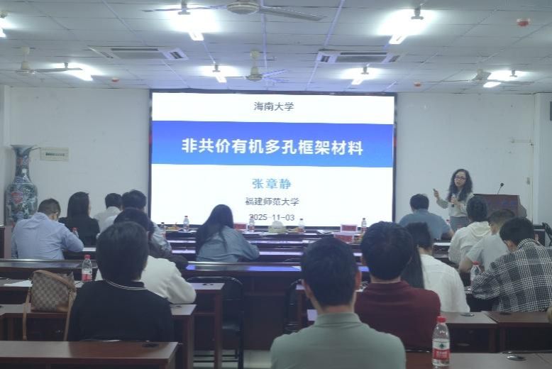 2025年11月3日,第五届“海南大学化学化工前沿交叉∙椰风论坛”成功举办。化学化工学院院长卢兴、党委副书记(主持工作)杨玮婷出席论坛,论坛由化学化工学院副院长潘福生主持,会议吸引了教师、博士生、硕士生等近百人参加。