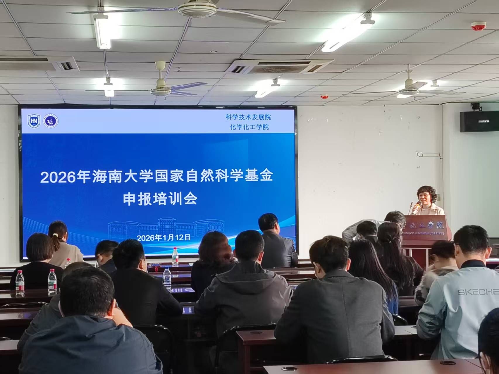 为精准对接2026年国家自然科学基金申报新政策、新要求,切实提升全校科研人员项目申报质量与竞争力,2026年1月12日下午,由科学技术发展院联合化学化工学院主办的2026年海南大学国家自然科学基金申报培训会成功举办。会议由化学化工学院副院长潘福生主持,科学技术发展院科技处副处长秦春秀、化学化工学院党委副书记(主持工作)杨玮婷出席会议并讲话。学校化工、食品、材料、药学等相关领域教师参会。
